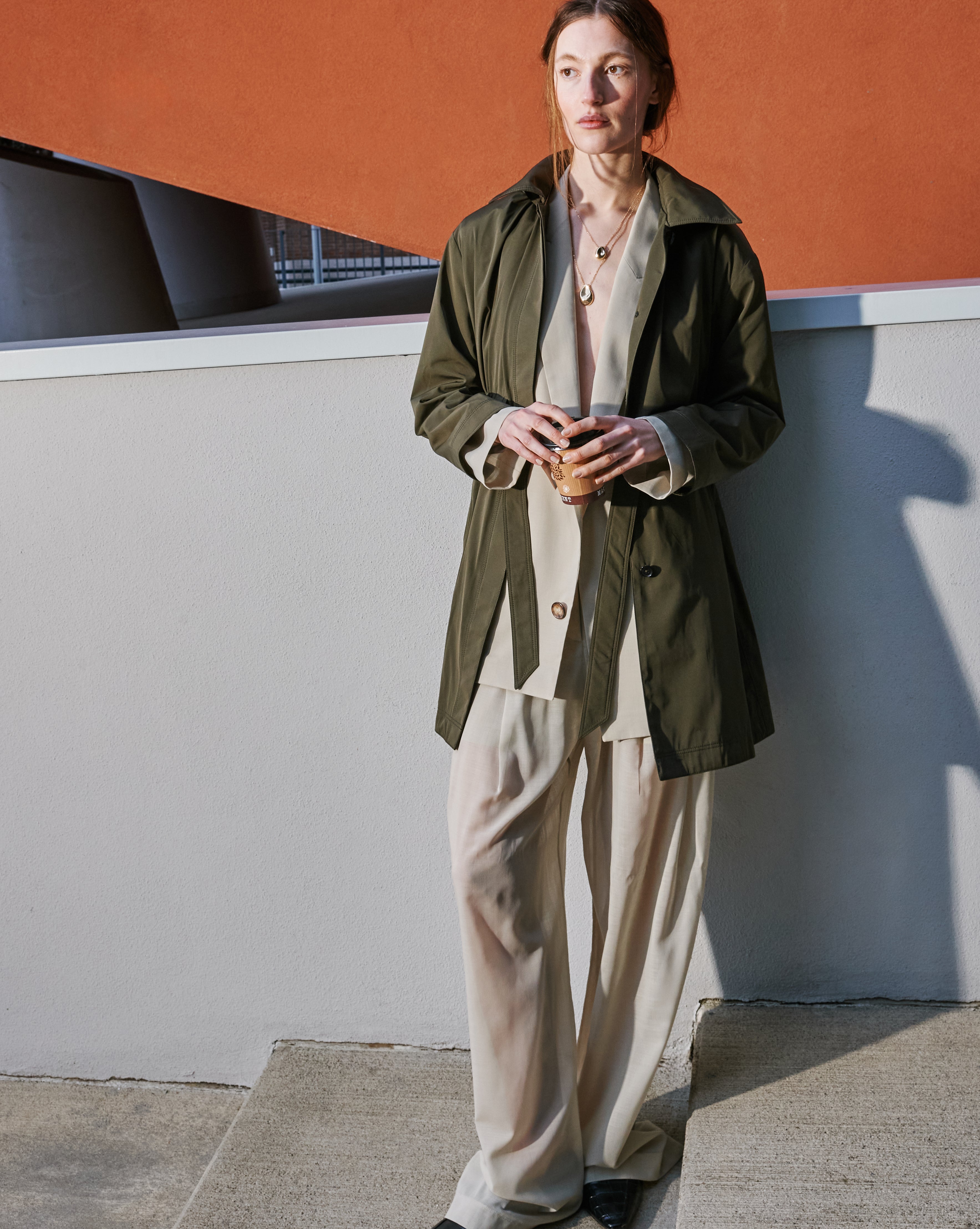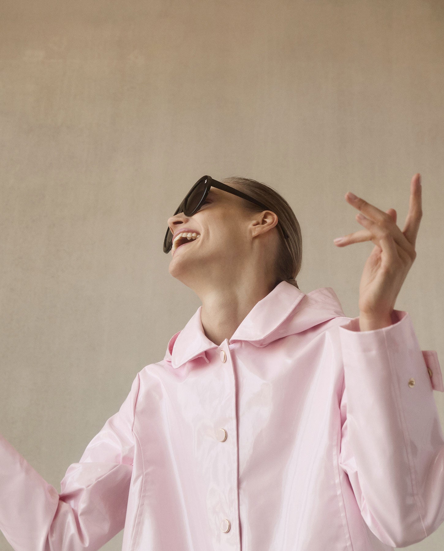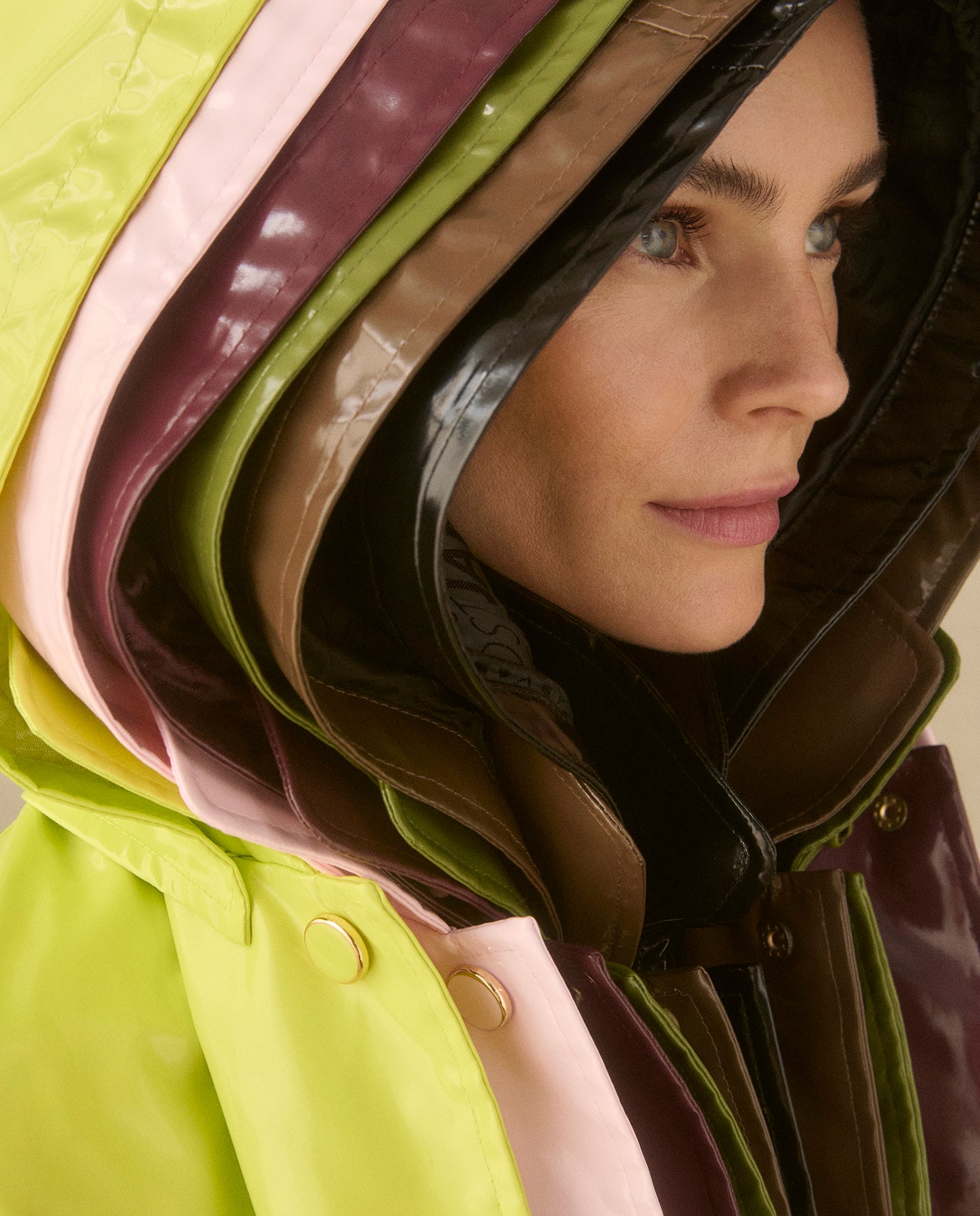 Where form meets function — the iconic Jane Post slicker redefines rainy-day style with effortless New York confidence.