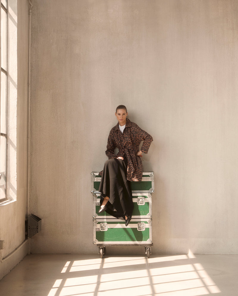 Cinch Waisted Raincoat with Detachable Hood - Leopard Print
