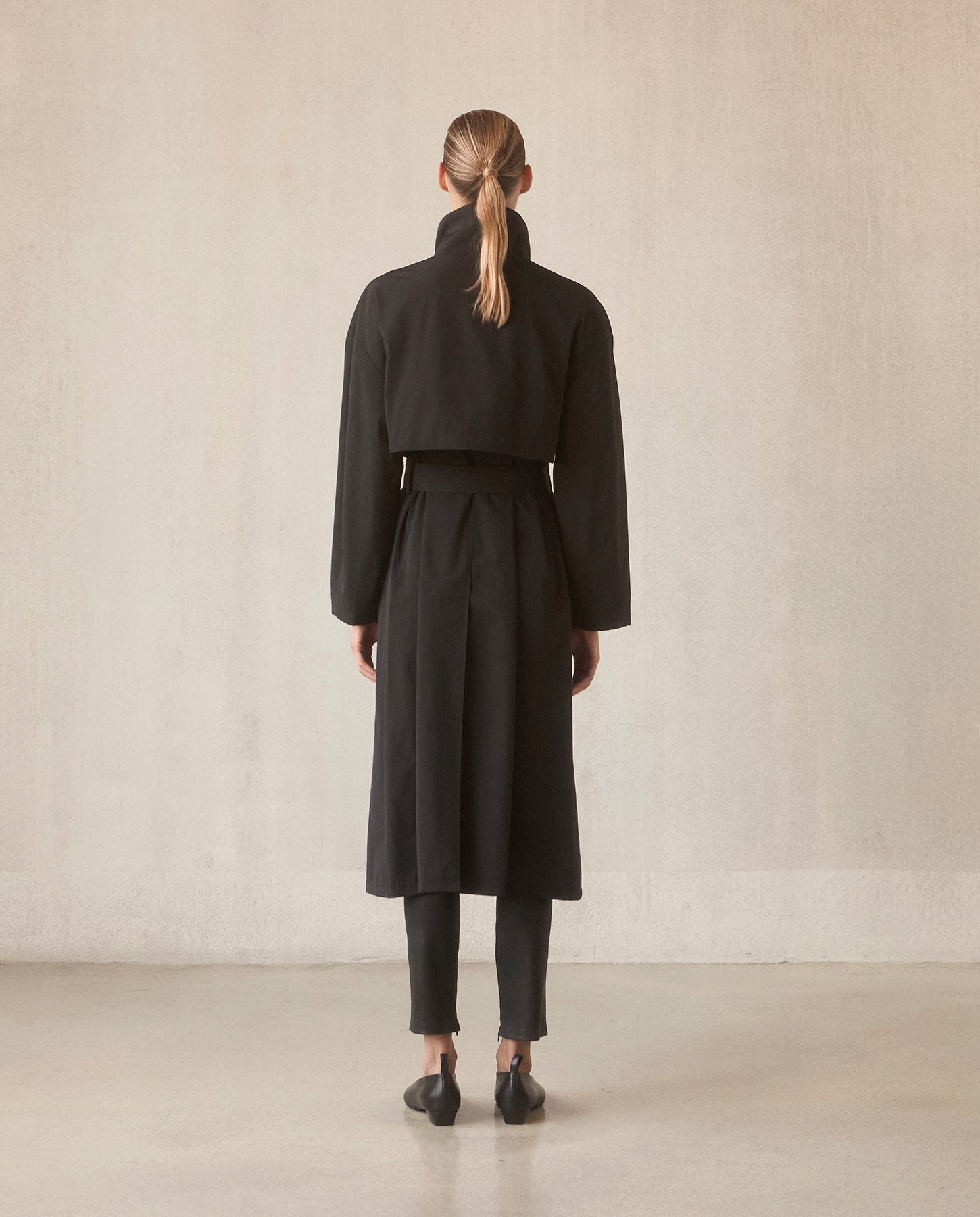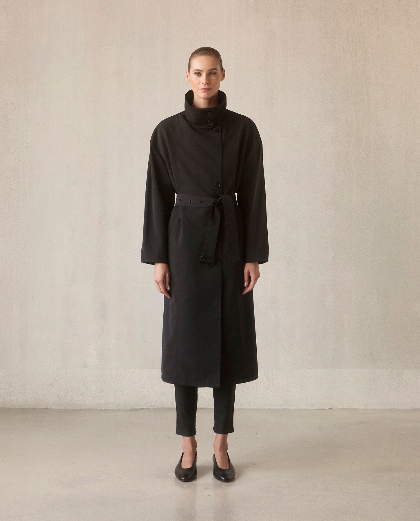 Asymmetrical Belted Trench with Stand Collar - Black