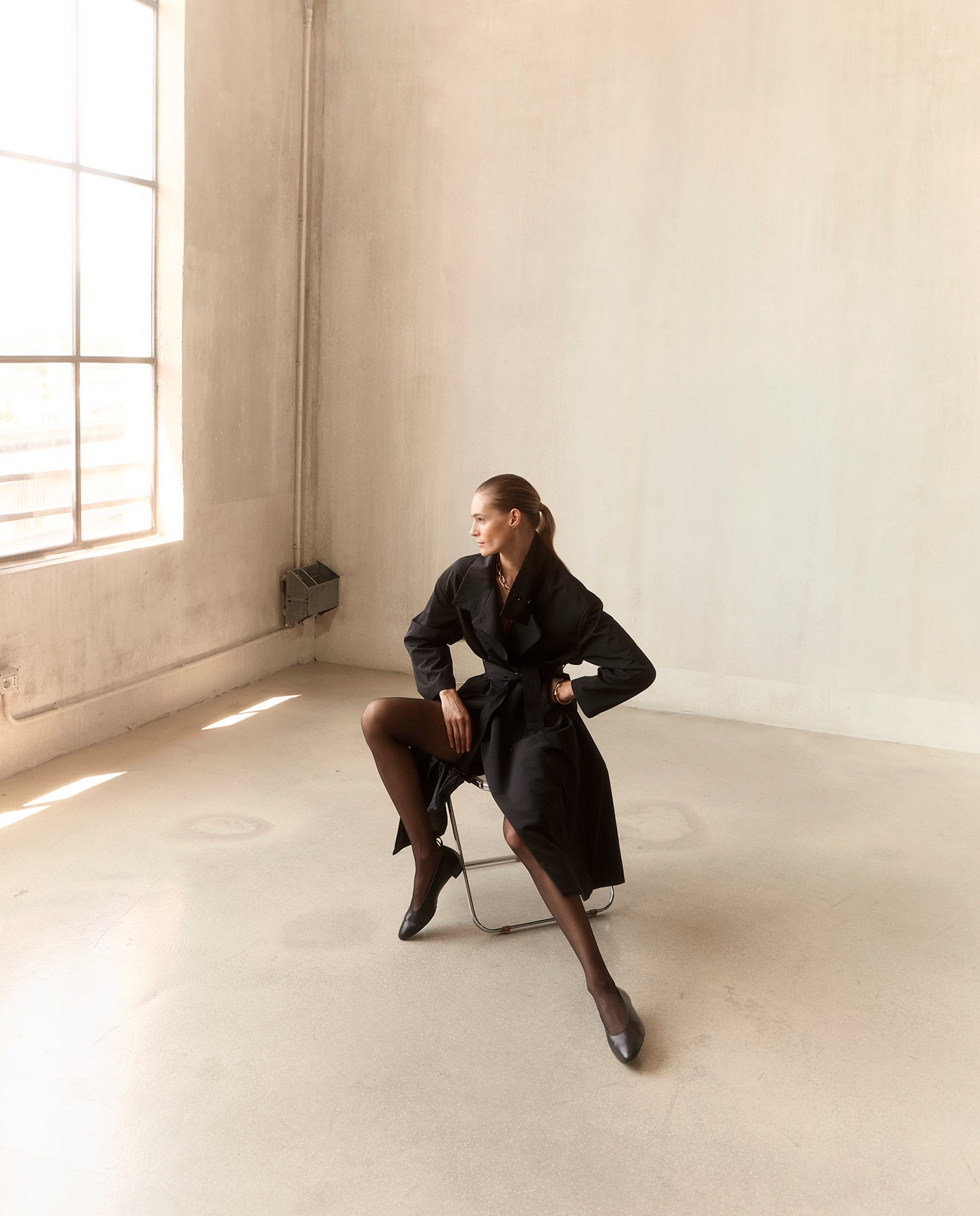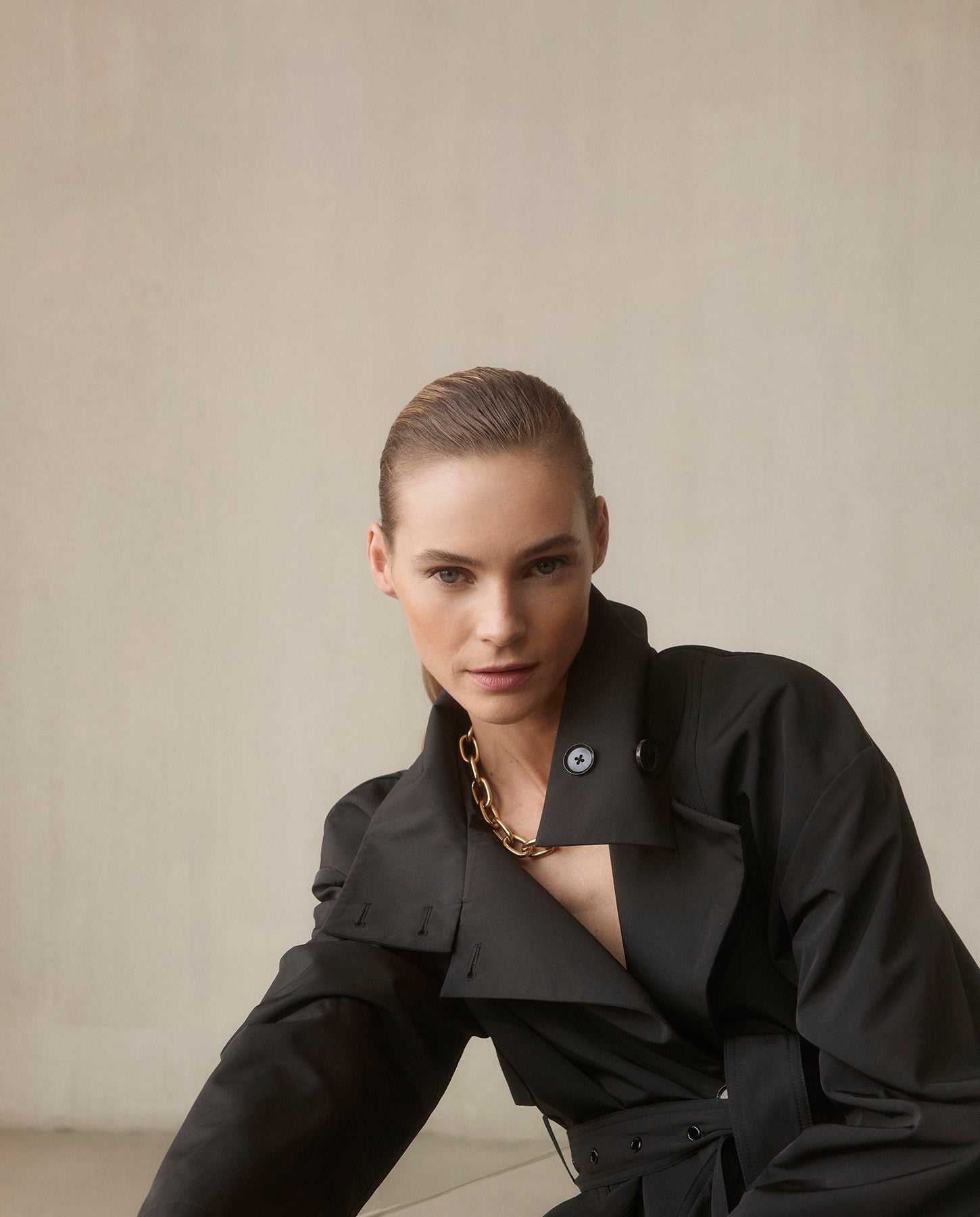 Flowing and stunning, this long raincoat combines superb styling with comfort and function.
