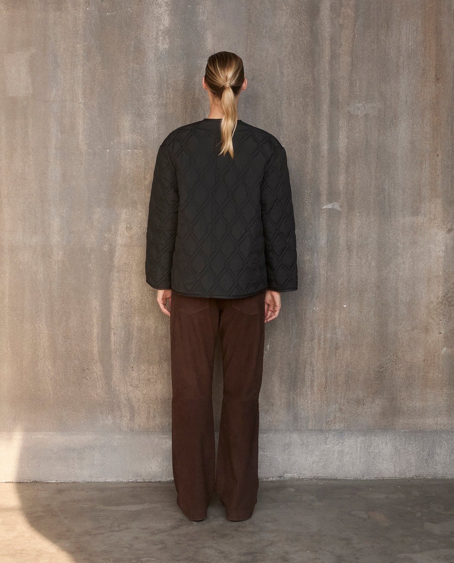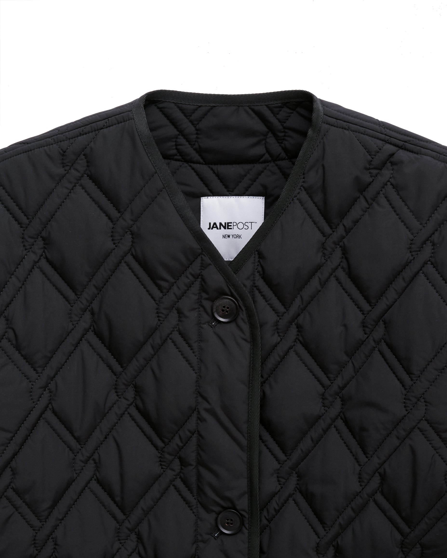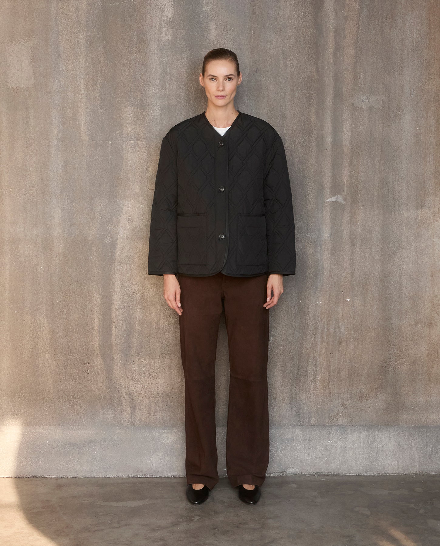 A wonderful fall jacket, finished in water-resistant Italian fabric with a chain motif quilt pattern. Featuring horn buttons, generous patch pockets and twill edge taping. The fit is slightly boxy giving it a modern and fashionable vibe, lightly quilted and designed to be worn alone or as a layering piece.