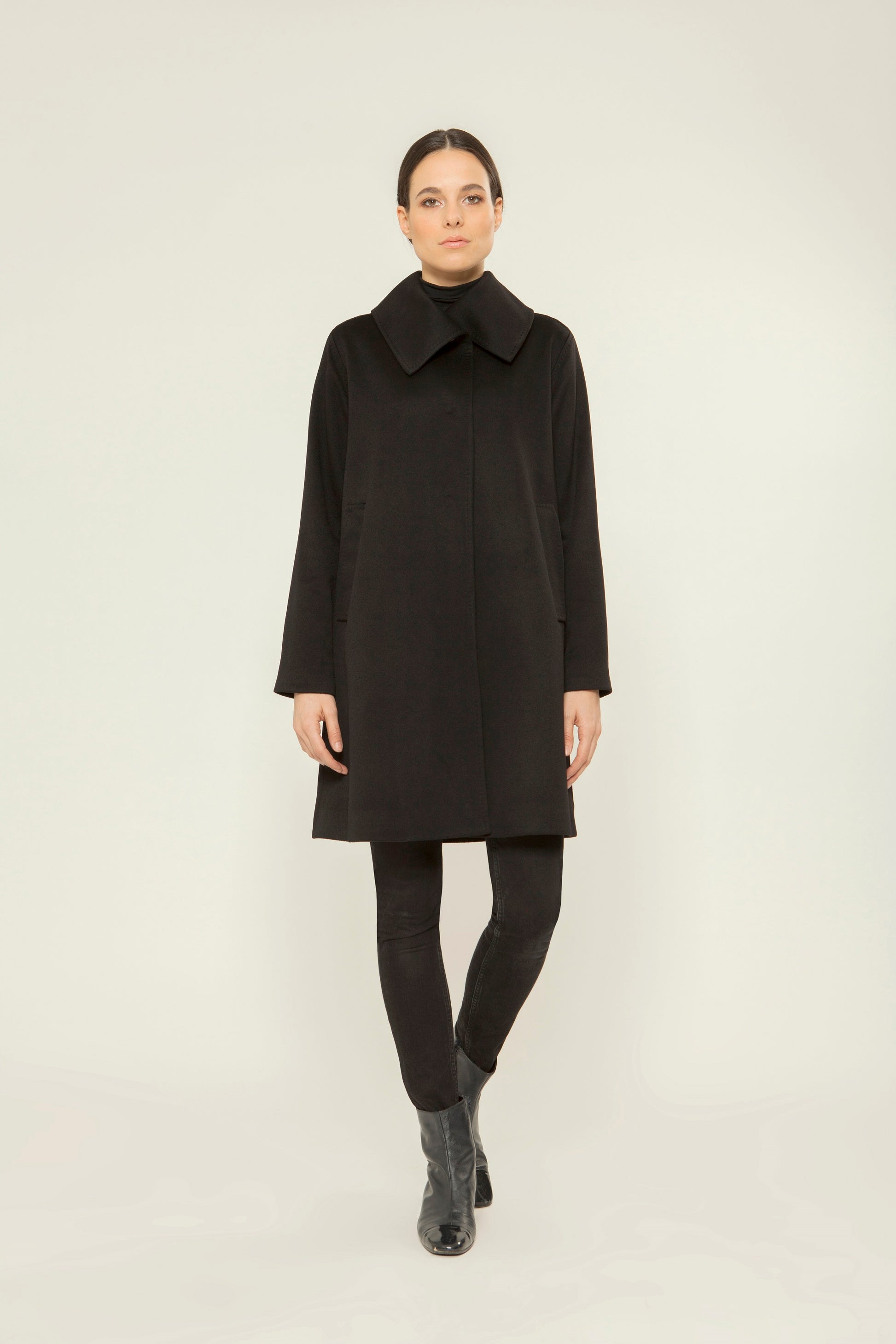 Easy fitting with a dramatic envelope collar. Slight A-line cut with flattering shoulder and sleeves.