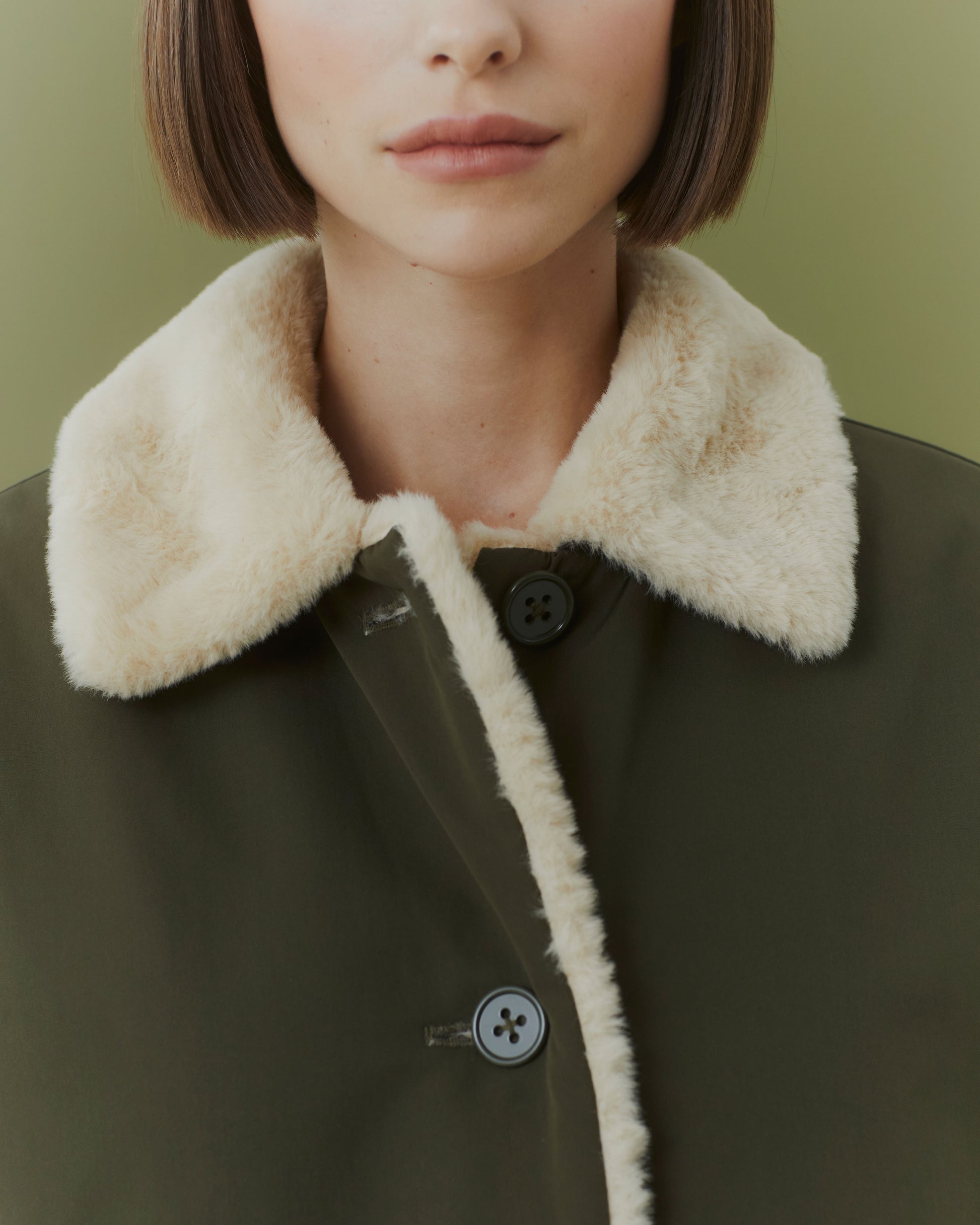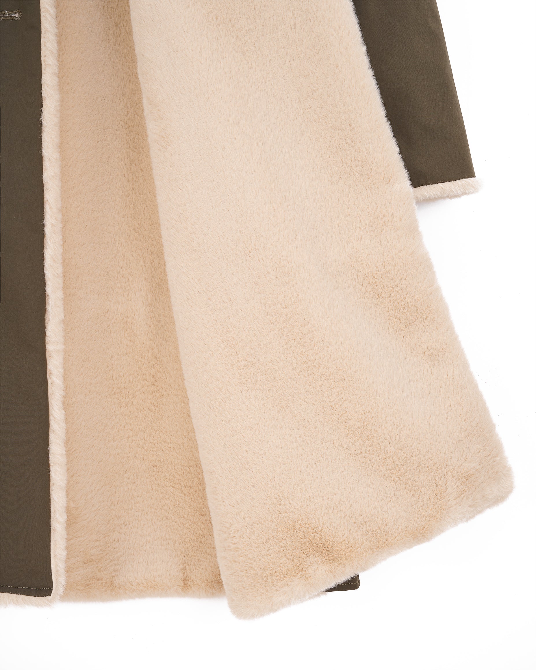 Made up in our signature water-resistant nylon, the coat is fully lined - body, collar and cuffs - with the highest quality sheared beaver faux-fur.